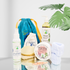 Le tout délicatement présenté dans un élégant sac en suède réutilisable — un écrin raffiné pour vos trésors de bien-être.
